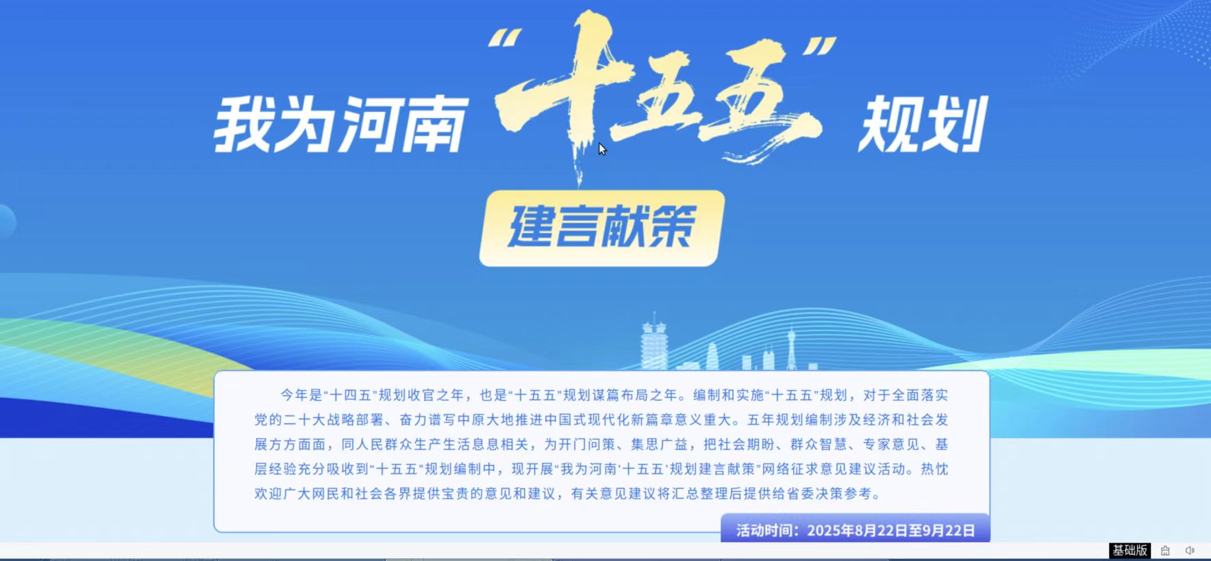 • 關(guān)于開展“我為河南‘十五五’規(guī)劃建言獻(xiàn)策”網(wǎng)絡(luò)征求意見建議活動(dòng)的公告